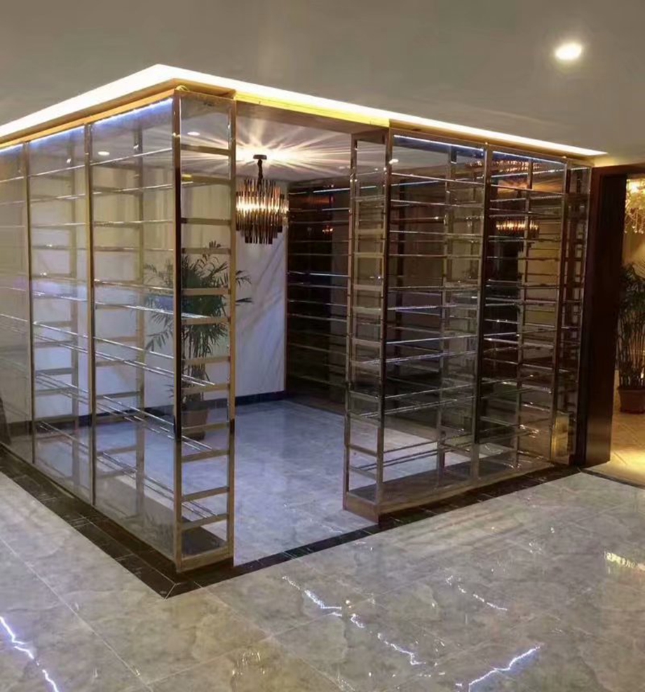 天浩金屬不銹鋼酒柜采用304/316材質,裝飾效果美觀、大氣。經久耐用“抗腐蝕”“耐磨性能”比其它材料更具有優勢。
